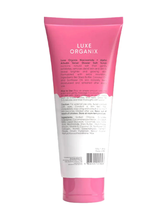 Luxe Organix Niacinamide + Alpha Arbutin 3x Whitening Velvet Shower Salt Scrub -320g (Pink)