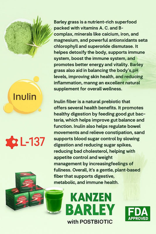 Kanzen Barley Powder Drink Mix with Prebiotic and Japan Patented POSTBIOTIC - 10sachet /Box