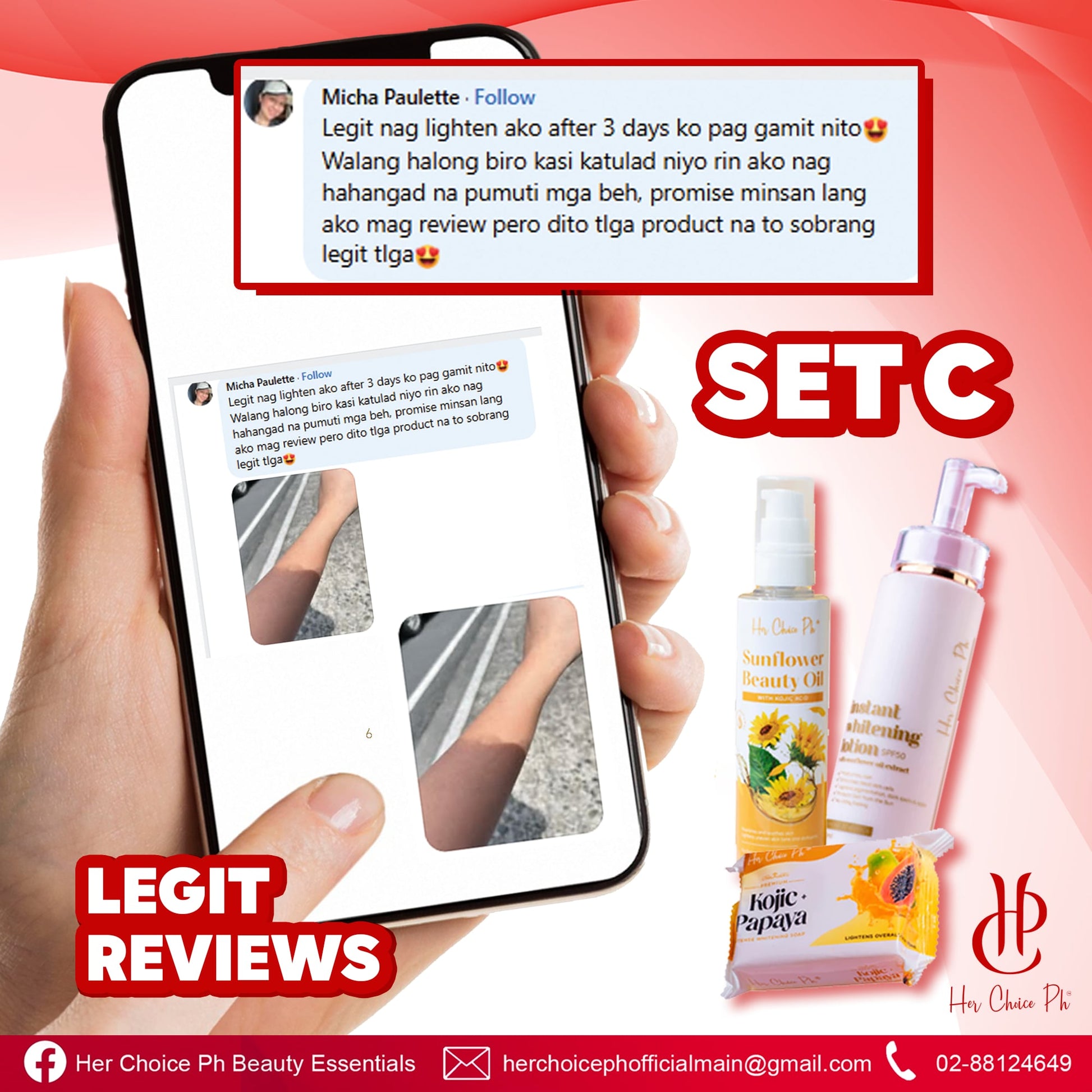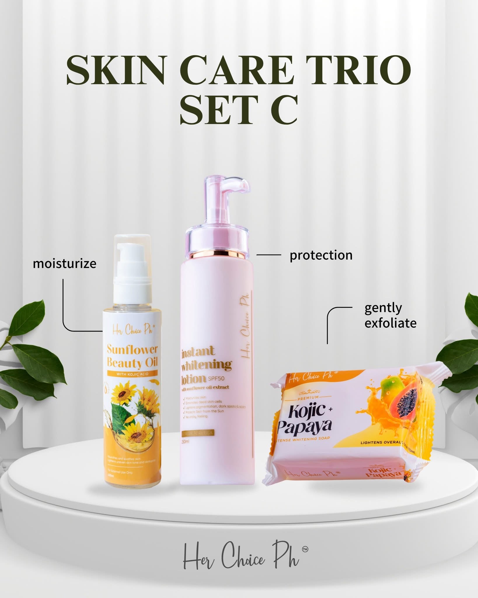 #SetCGlow #WhiteningSet #HerChoicePH #GlowUpNow #SkincareThatWorks #SPF50 #naturalwhitening #SunflowerOilMagic #kojicsoappower #SkinConfidence