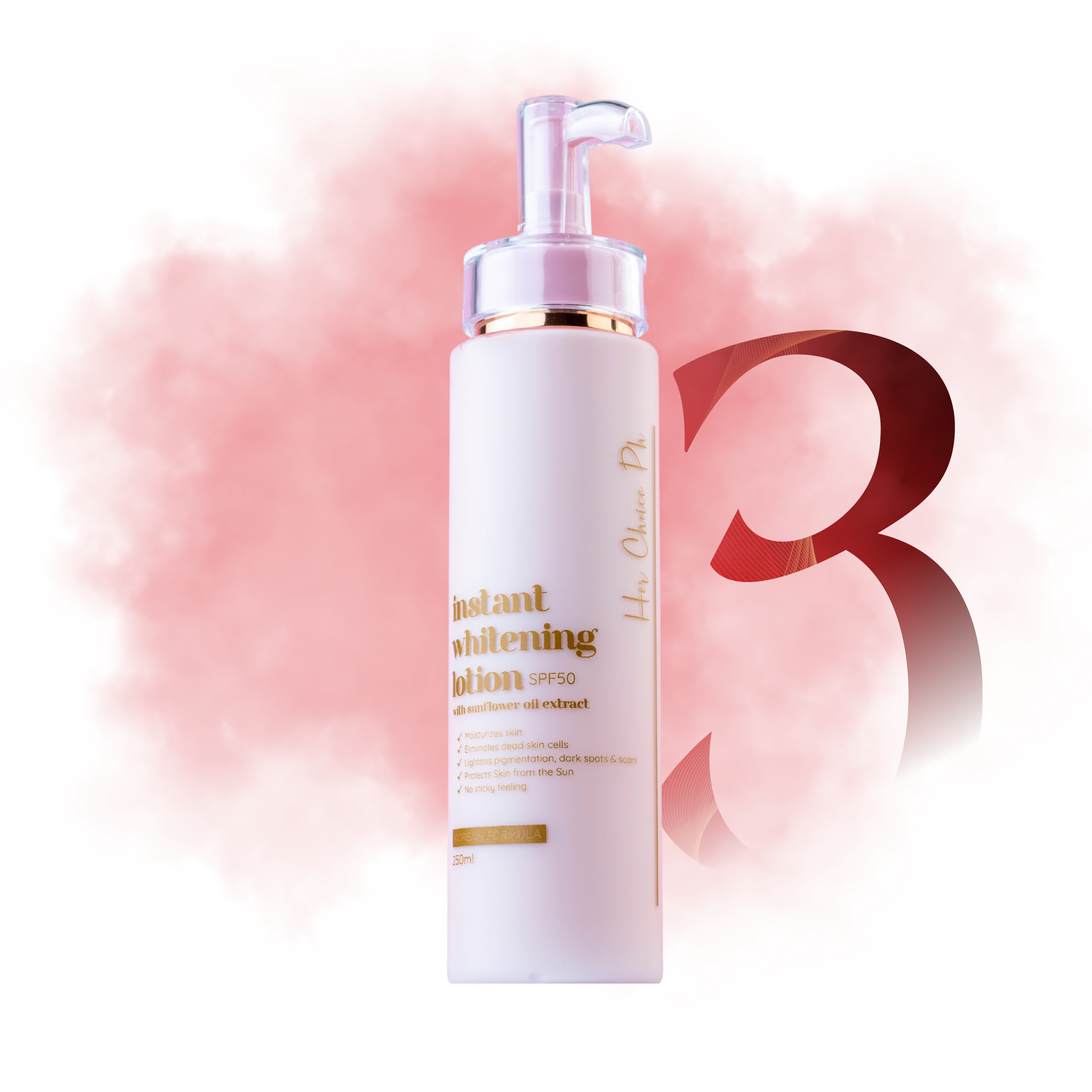 ☀️ Instant Whitening Lotion SPF50 – Instantly brightens + protects with SPF50.