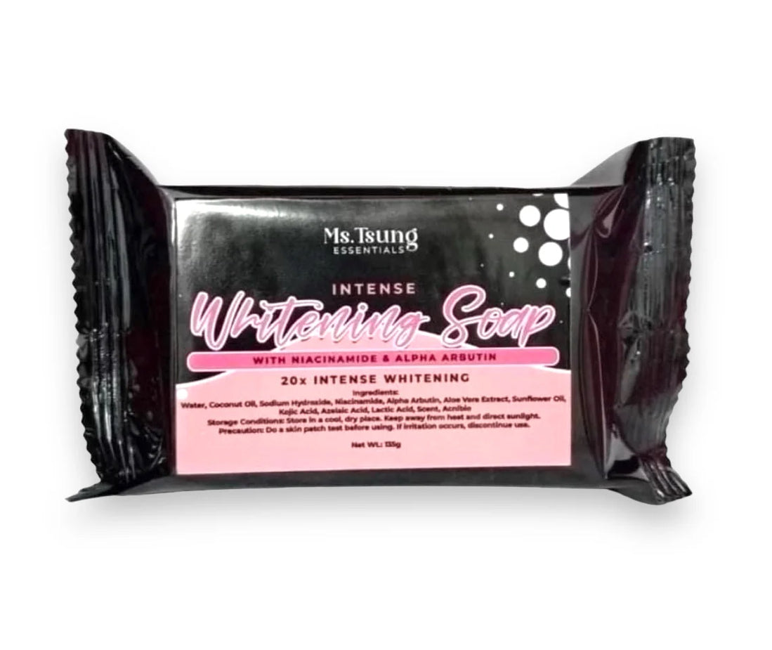 Achieve brighter, smoother, and more even skin with Ms. Tsung's Intense Whitening Soap. Infused with Niacinamide and Alpha arbutin, it reduces inflammation, hyperpigmentation, dark spots, and freckles for a radiant complexion. Upgrade your skincare routine with our expertly formulated soap.Β